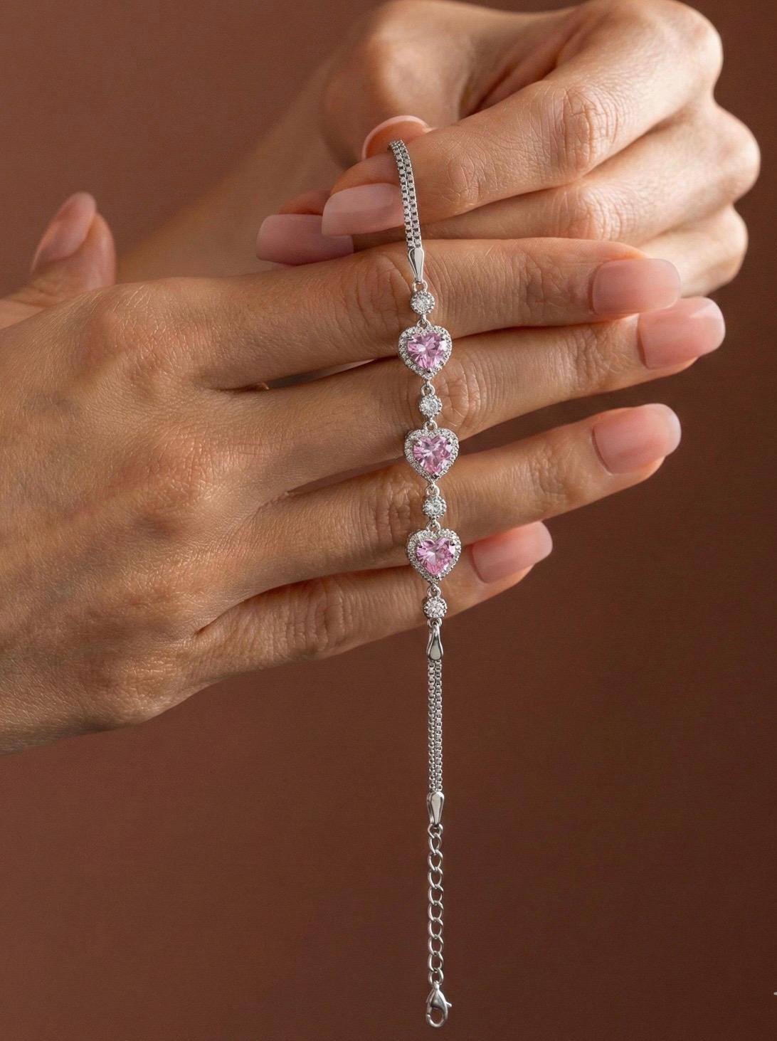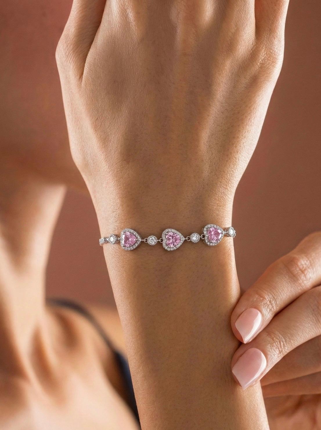 Etiketler: pink heart bracelet, tennis bracelet, altın renkli bileklik, rhodium bileklik, zirkon tenis bileklik, romantic jewelry, valentine gift, elegant bracelet, halo cz, 925 sterling silver jewelry
